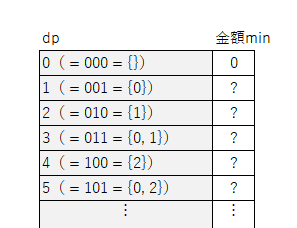std::vector<std::vector<long long>> dp((1 << Okashi.size()), std::vector<long long>(Okashi.size(), INF));